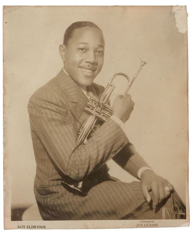 David Roy Eldridge (January 30, 1911 – February 26, 1989), commonly known as Roy Eldridge, and nicknamed “Little Jazz”, was an American jazz trumpet player. His sophisticated use of harmony, including the use of tri-tone substitutions, his virtuosic solos exhibiting a departure from the smooth and lyrical style of earlier jazz trumpet innovator Louis Armstrong, and his strong impact on Dizzy Gillespie mark him as one of the most influential musicians of the swing era and a precursor of bebop. HAPPY BIRTHDAY ROY!